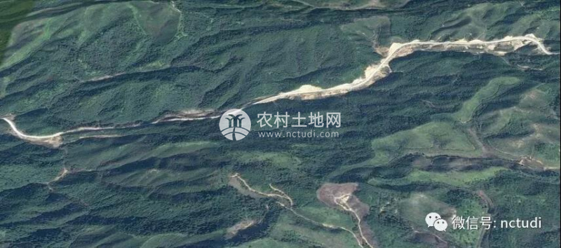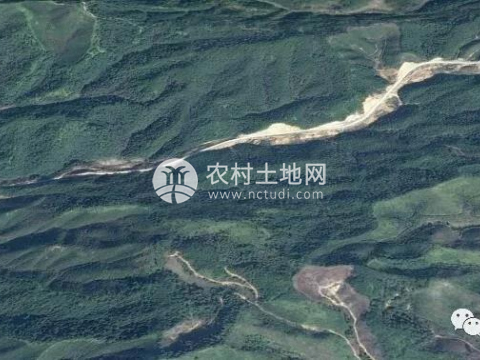 這是較早的衛(wèi)星圖片,山谷長度為1.3公里,整個山谷全程通4.5米寬水泥路,白色的線條為新開的省道。省道對面是已經(jīng)砍伐完畢的林地數(shù)百畝,可以養(yǎng)殖土雞。本圖片只畫了所有土地的一半