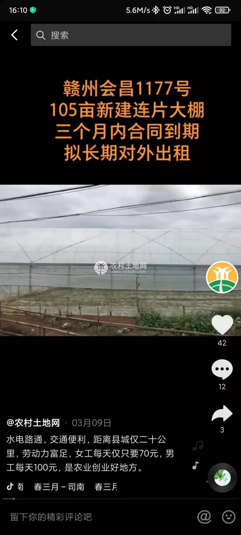 HC182#會昌縣連片50畝大棚出租