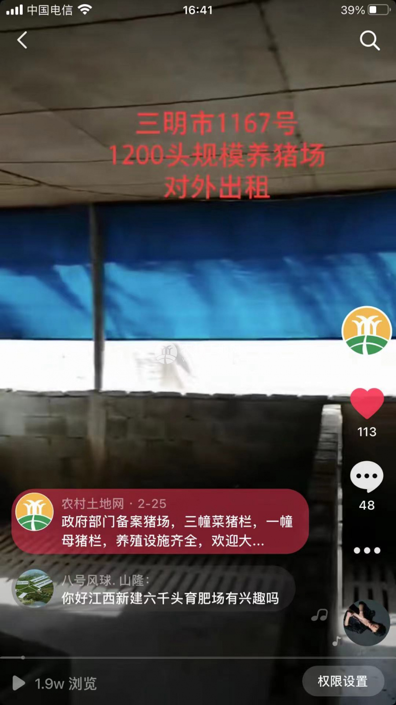 三明市2091號豬場 繁育250頭母豬 存欄2200頭生豬 年出欄4500頭 證照環(huán)評齊全
